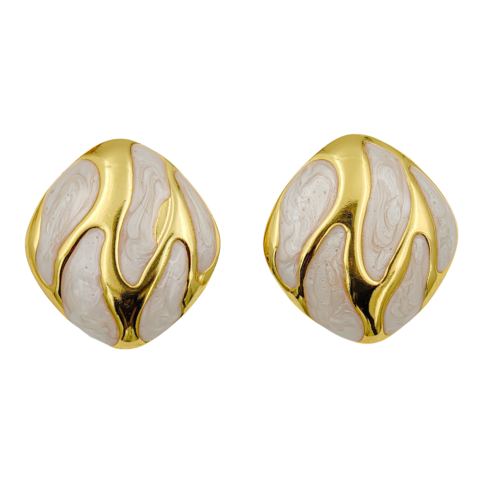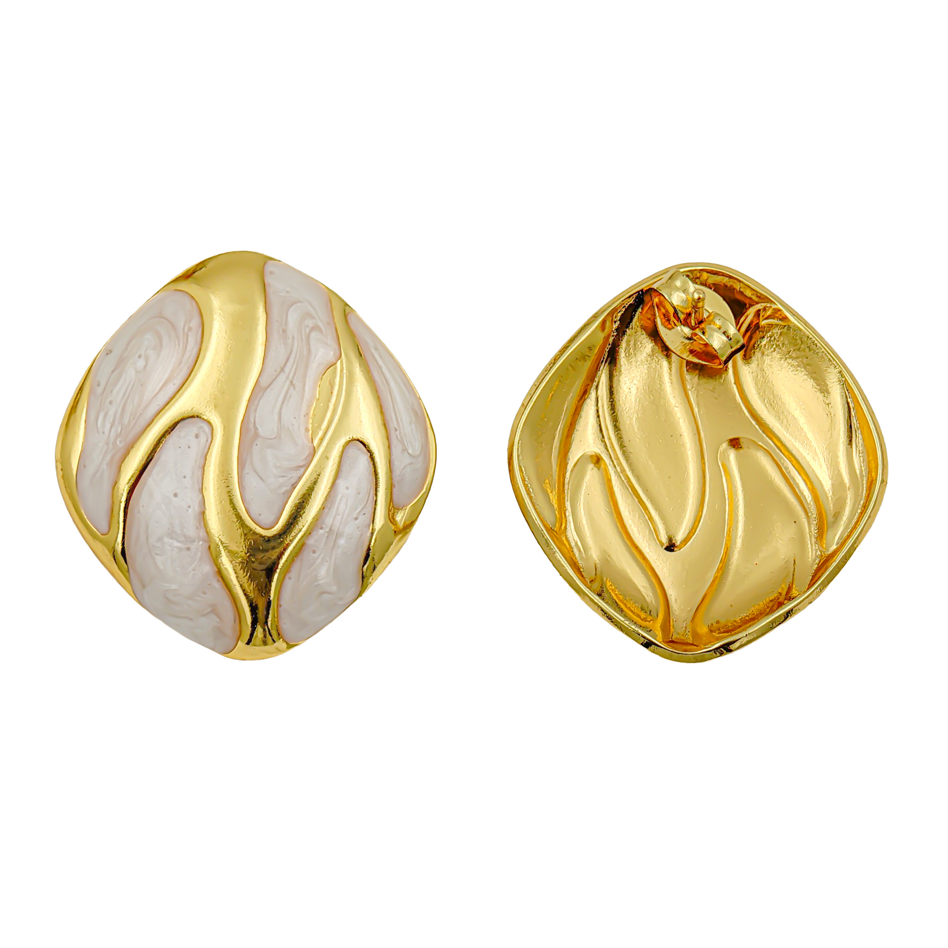 Crafted with a radiant 18K gold-plated finish, these statement studs feature flowing wave-like patterns filled with glossy enamel in Orange, White, Pink, Aqua Blue and Black. The unique marbled texture brings a luxurious yet playful touch, making them a versatile accessory for both casual and festive occasions.