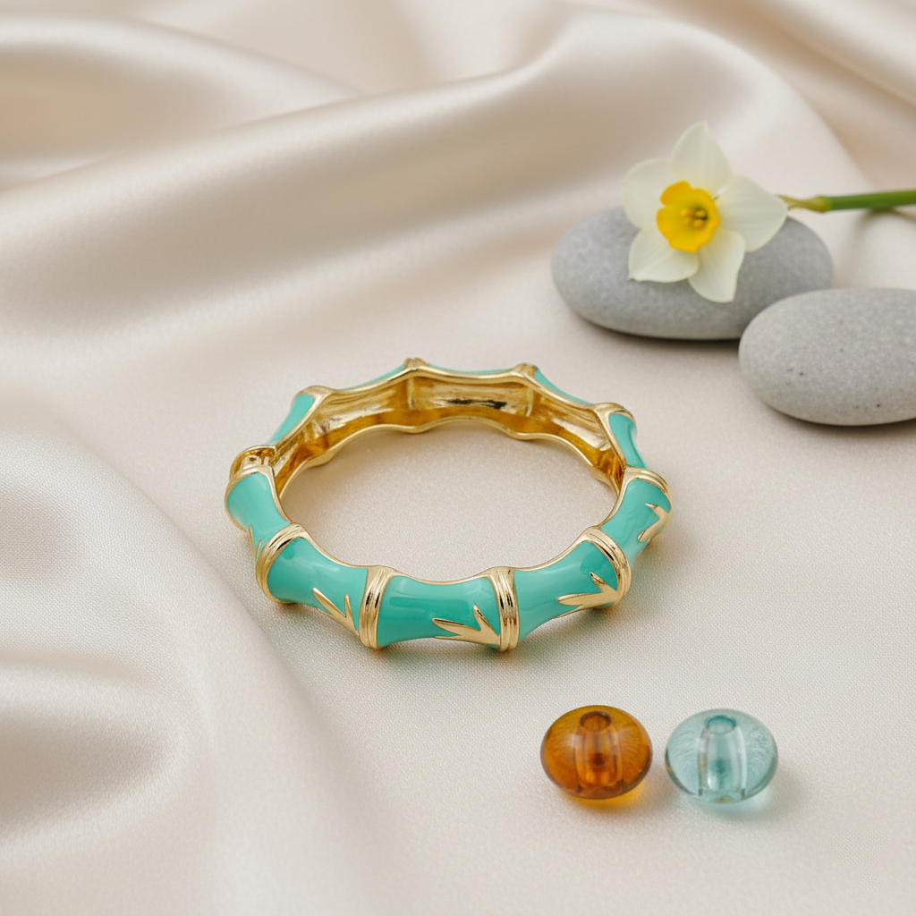 SreeVanna Luxe Bamboo Enamel Bangle (Turquoise Blue, Aqua Green, Sunshine Yellow, and Terracotta Marble)