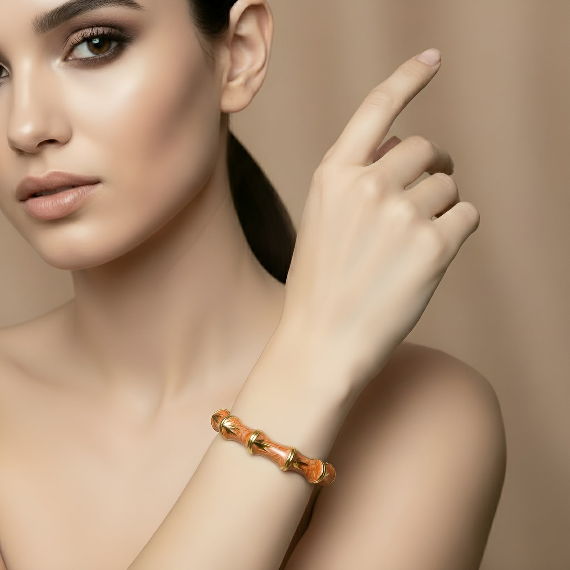 Discover timeless sophistication with the SreeVanna Luxe Bamboo Enamel Bangle, a perfect fusion of modern artistry and classic elegance. Inspired by the serene strength of bamboo, this statement bangle is crafted from premium stainless steel with a lustrous 18K gold plating and smooth enamel finish.